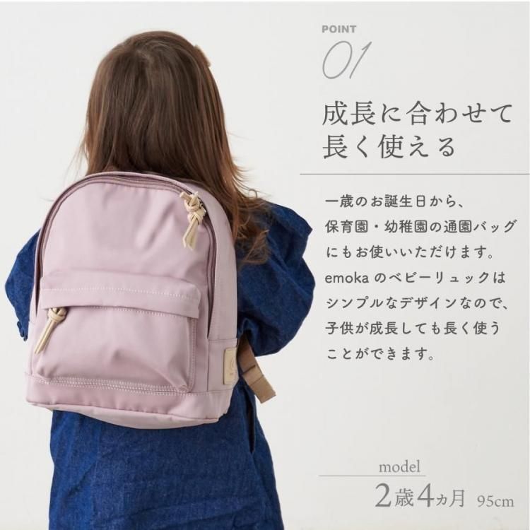 【emoka ベビーリュック】 9ヶ月ごろから、4歳ごろまで長く使えるように、ちょっぴり大人びたシンプルスタイルのデザイン。 裏地がストライプなので開けても可愛いデザイン。 小さいお子様でも自分で開け閉めできるよう、ファスナーストラップのデザインにも拘りました。 産まれてきてくれてありがとう。 これからの大切な瞬間をベビーリュックといっしょに。 |