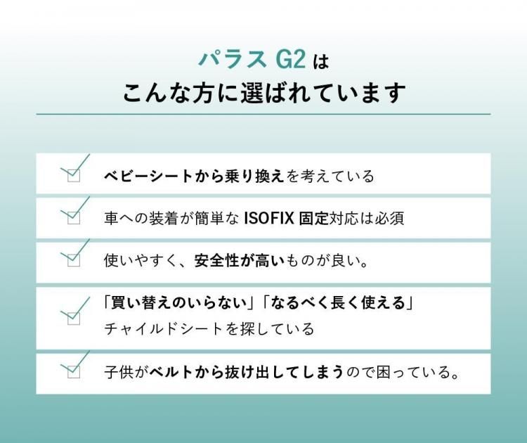 | 適応期間 | 76〜150 cm (15ヵ月〜12歳頃まで) |