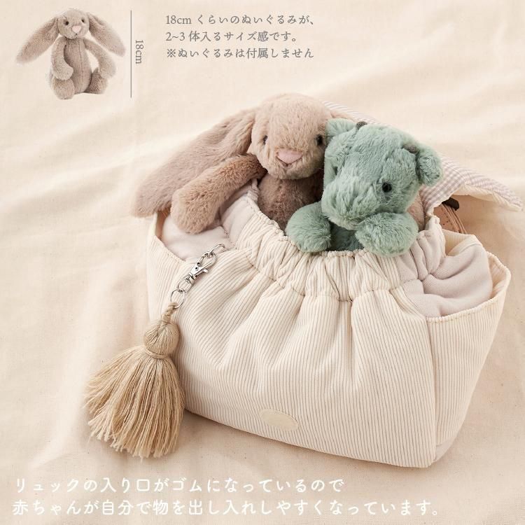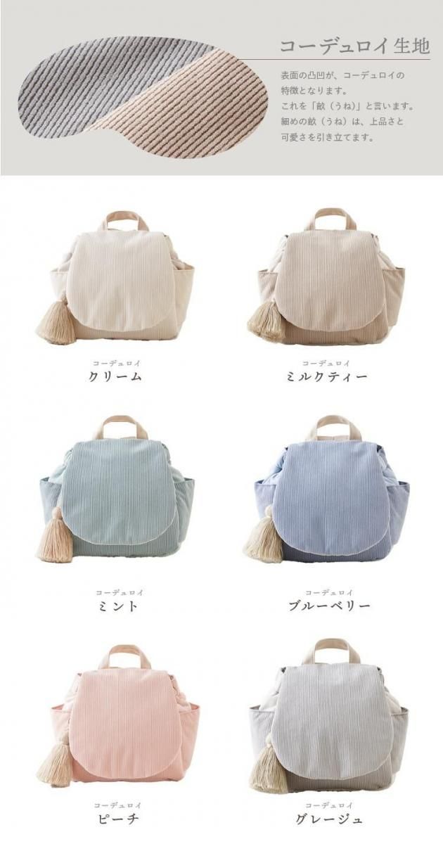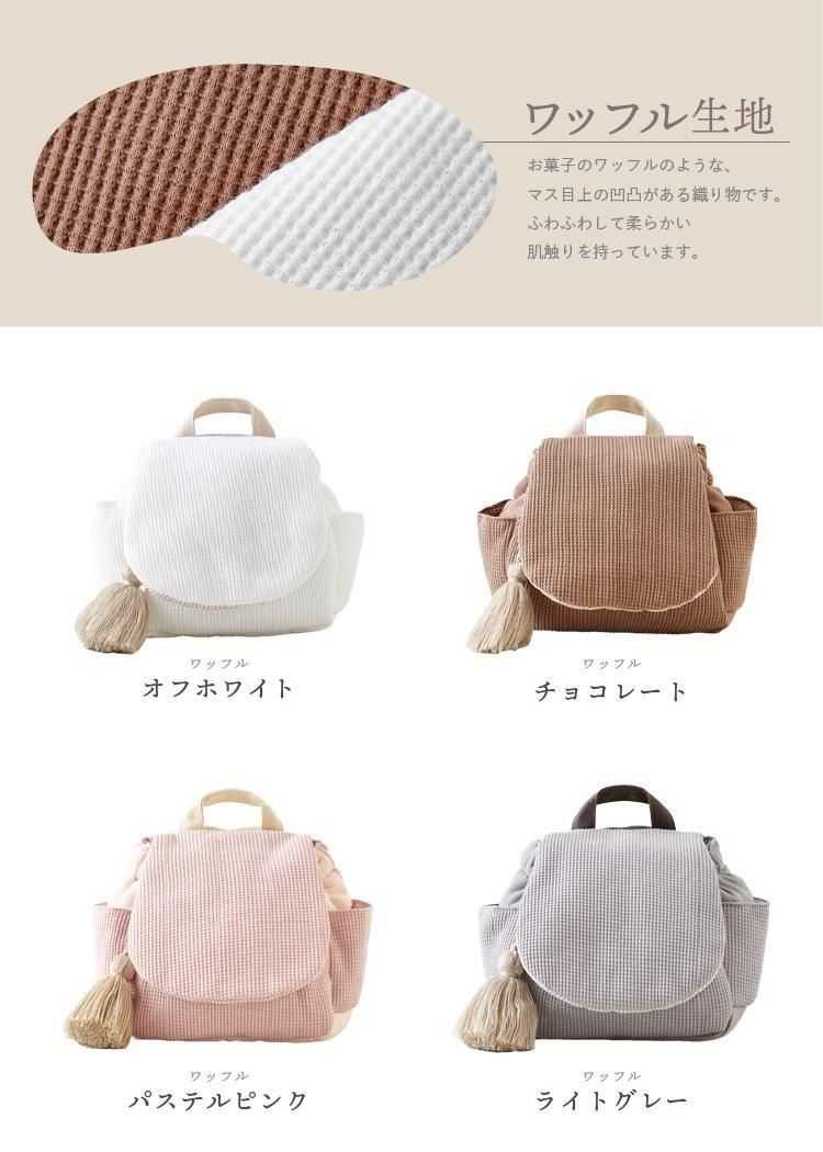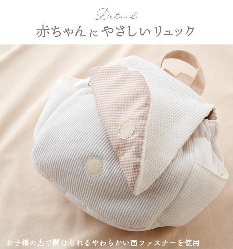 【ベビーリュック】 中国 本体:ポリエステル65% 綿35% 裏地:ポリエステル70% 綿30% 別布:綿100% テープ:綿100% 【一升餅】 もち米(国産)/コチニール色素(紅餅のみ) | ||
