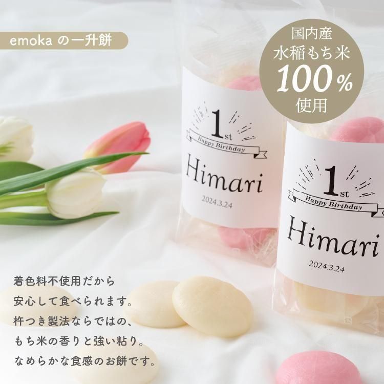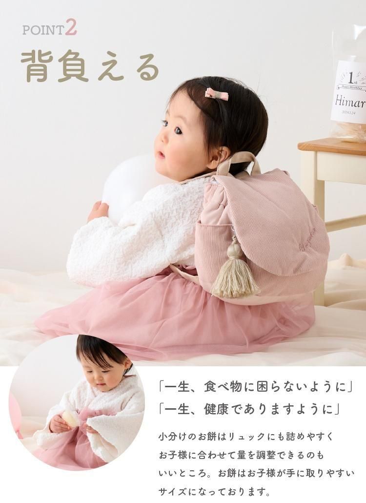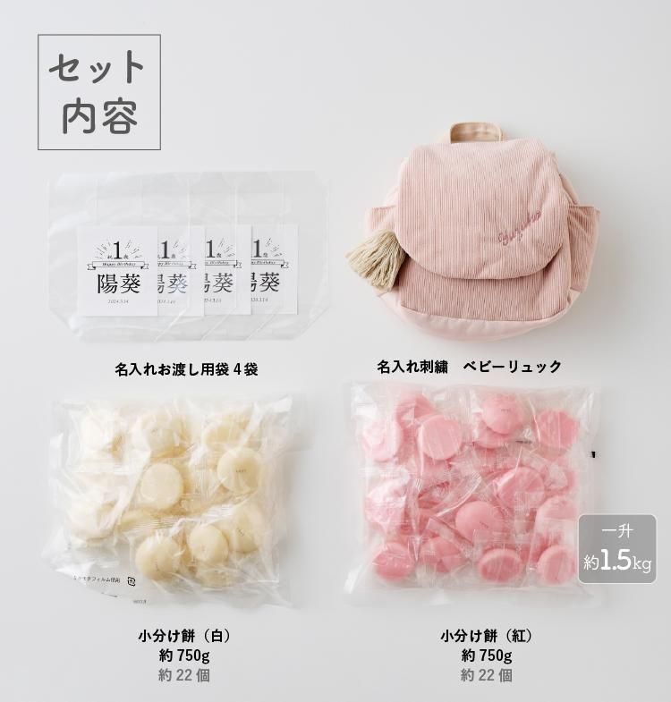 1歳 誕生日 一升餅 小分け 紅白 名入れ ふわもこ ベビーリュック 一歳 1才 お祝い 赤ちゃん 男の子 女の子 リュックサック 3L 刺繍 餅 小分け袋 一升もち emoka