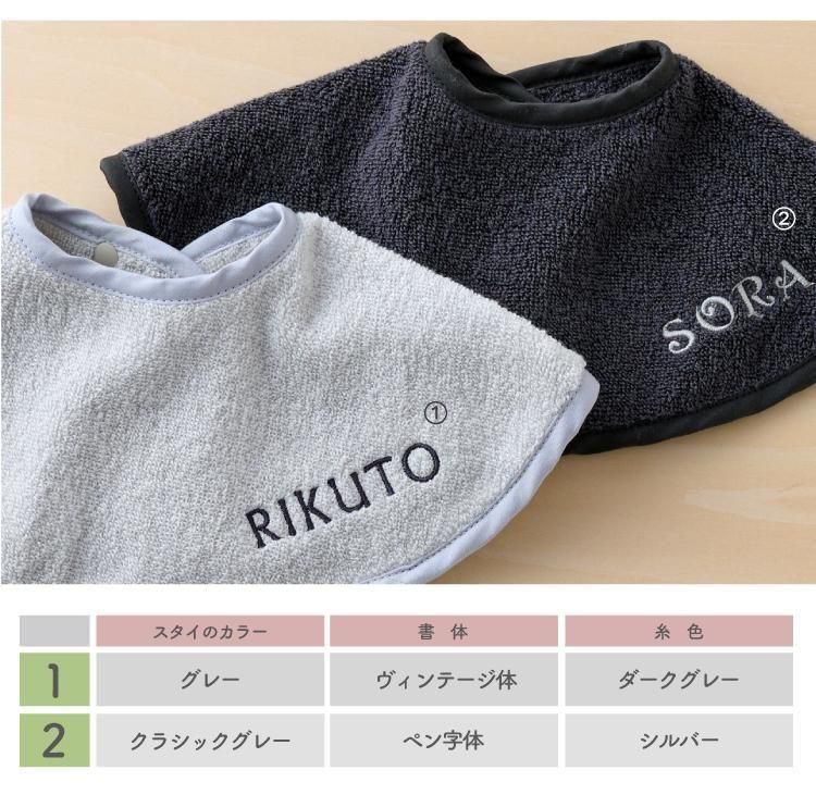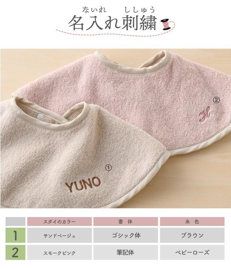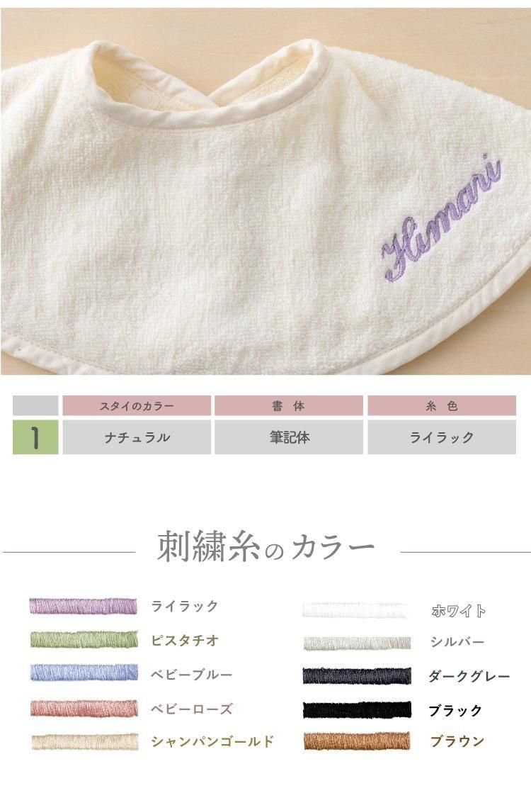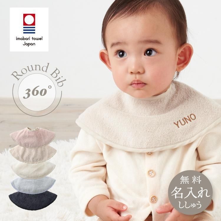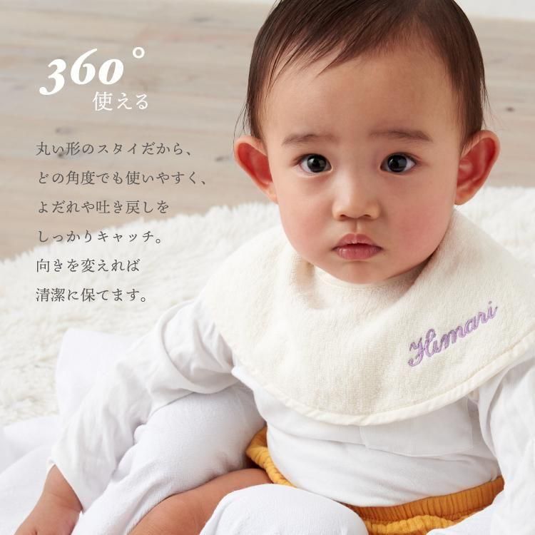 スタイ よだれかけ ビブ 名入れ 刺繍 つけ襟 今治タオル 綿100% コットン シンプル 赤ちゃん イニシャル ベビー 丸型 タオル生地 吸水性 emoka