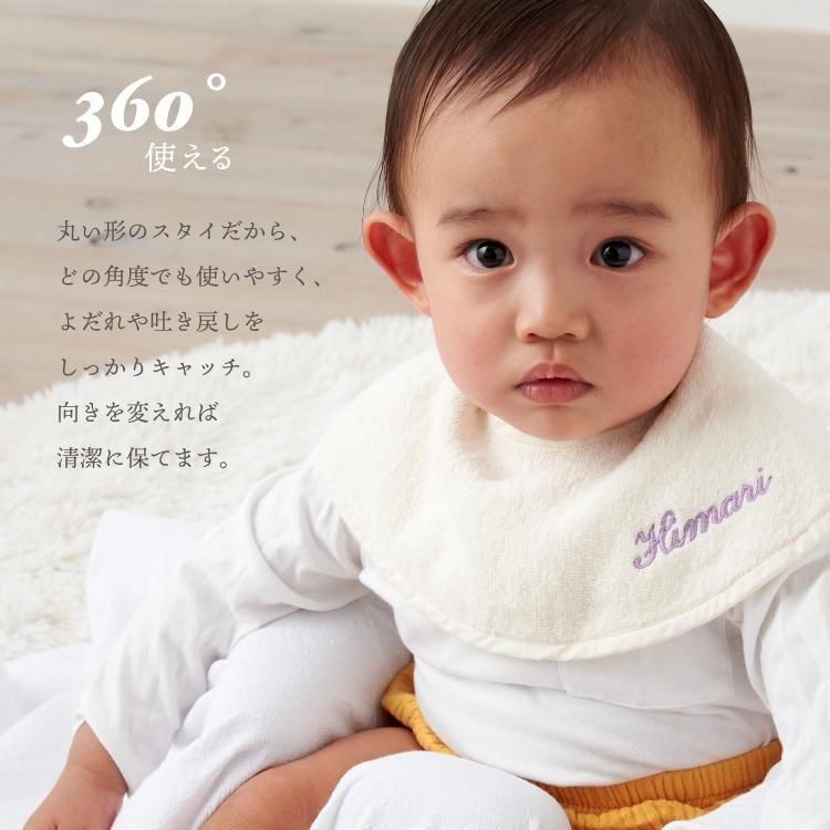 スタイ よだれかけ ビブ つけ襟 名入れ 刺繍 2枚 セット 今治タオル 綿100% コットン シンプル 赤ちゃん イニシャル ベビー 丸型 タオル生地 emoka
