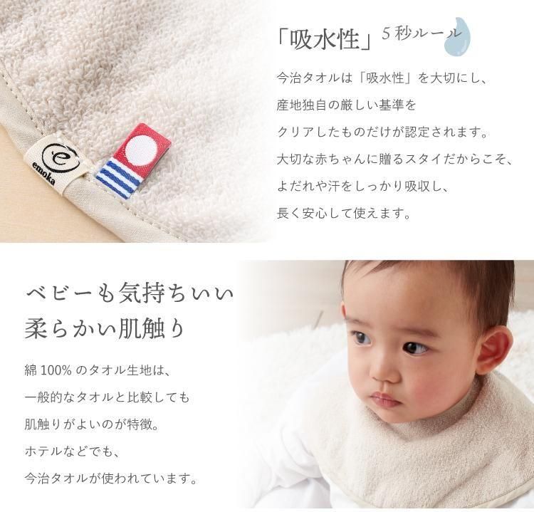 emoka 今治タオル ラウンドスタイ 丸型スタイ 名入れ刺繍 2枚セット 大切な贈り物にぴったりの emoka ラウンドスタイ 名入れ刺繍入り 2枚セット ギフトボックス。 今治タオルブランド認定の生地を使用した、360度使えるまあるいスタイは、ふわふわやわらかな肌触りと高い吸水性が魅力です。 シンプルでベーシックなカラーだから、どんなお洋服にも合わせやすく、デイリーにもお出かけにも活躍。 名入れ刺繍を入れることで世界にひとつだけの特別なアイテムに。 ギフトボックス入りで、出産祝い・ハーフバースデー・1歳のお誕生日など、心のこもった贈り物に最適です。 |