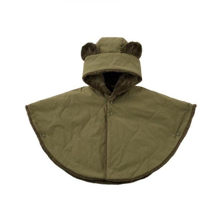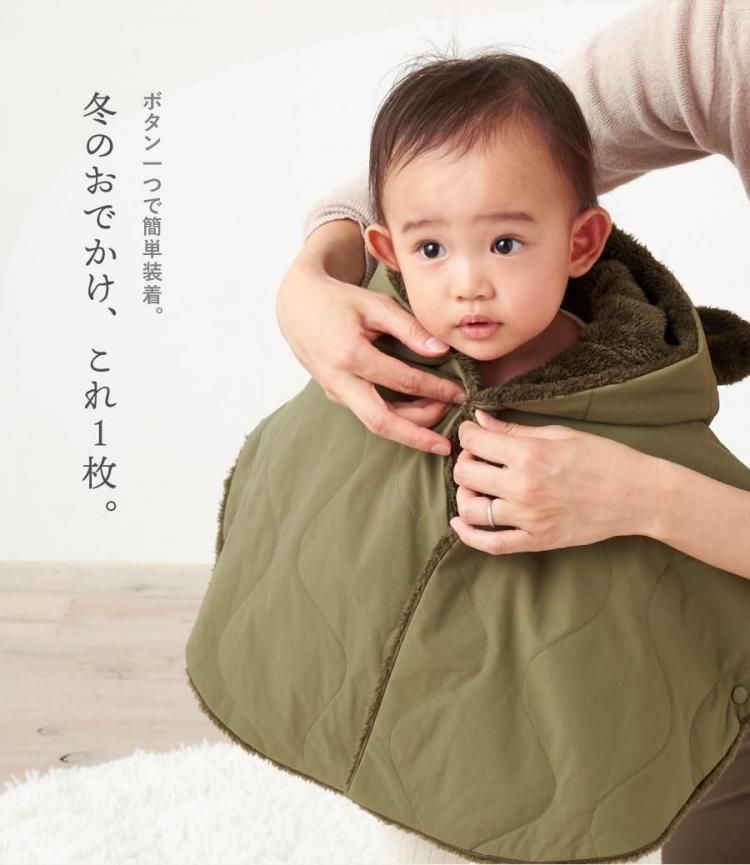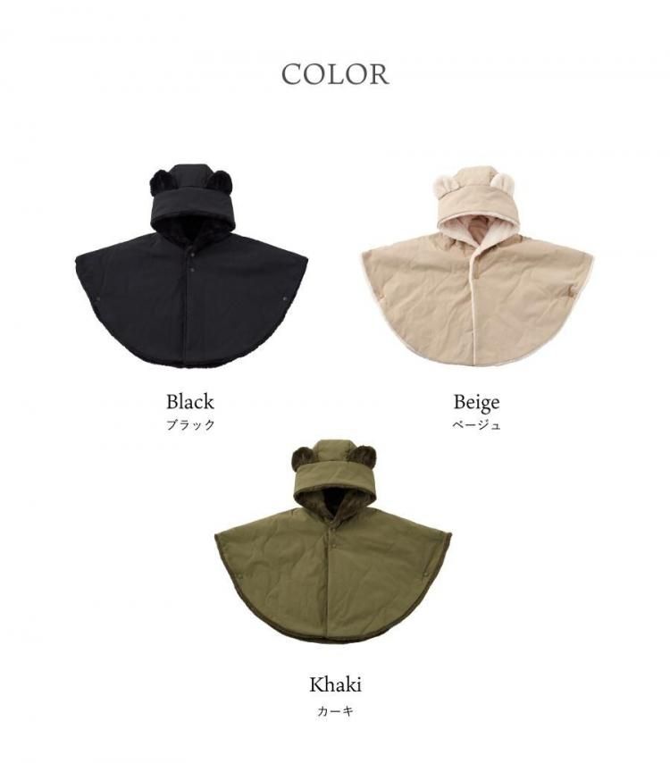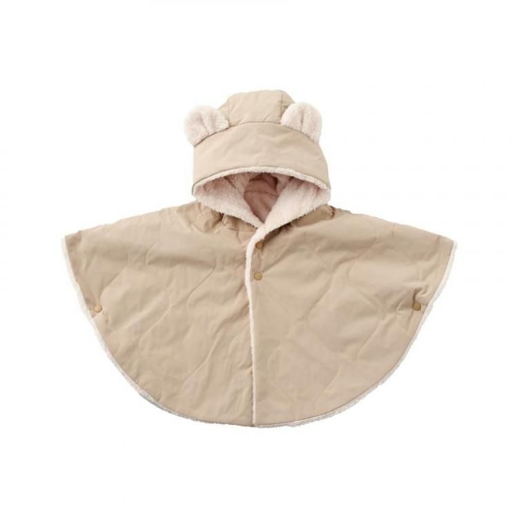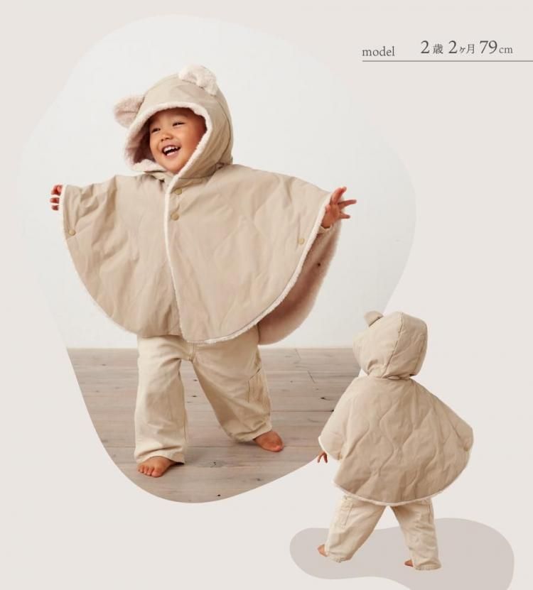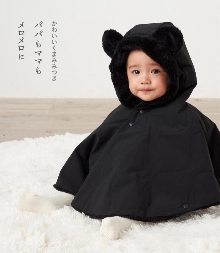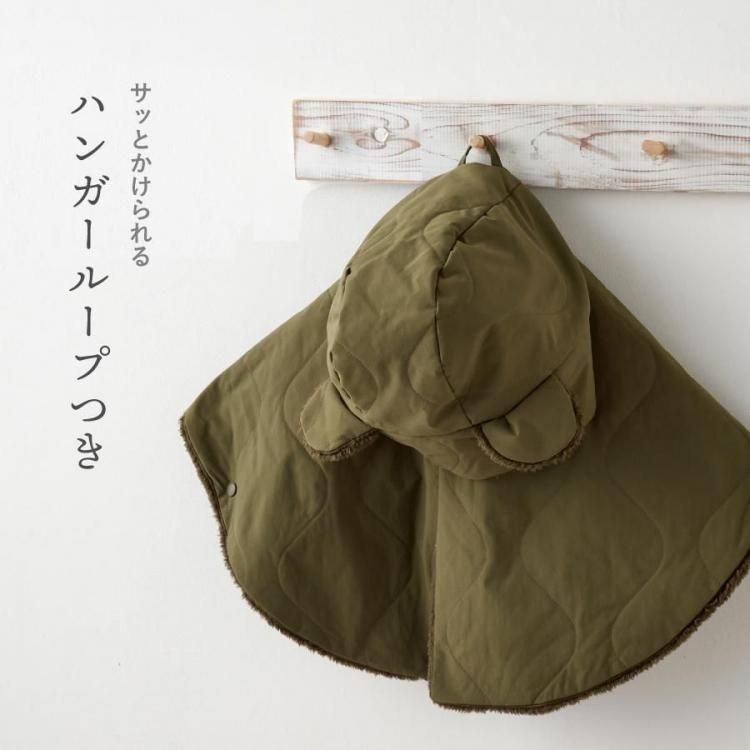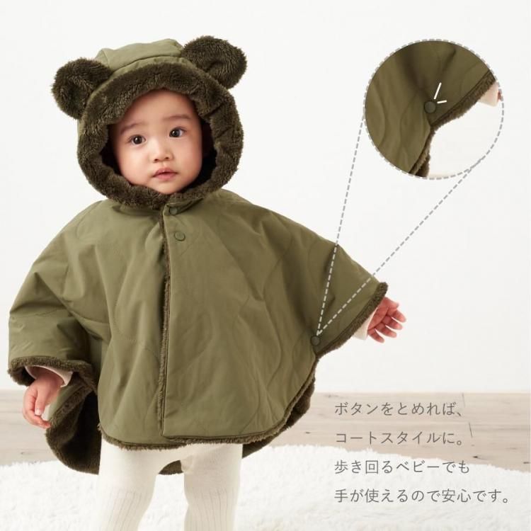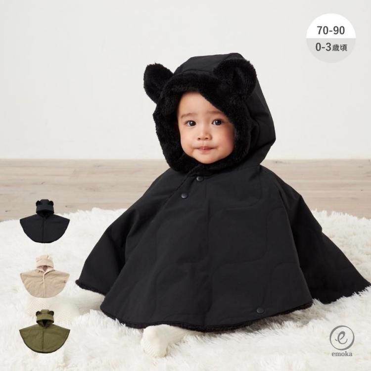ベビー ポンチョ アウター コート 赤ちゃん 子ども 防寒 シンプル マント キルティング くまみみ 出産祝い ギフト プレゼント 静電気防止 裏ボア emoka