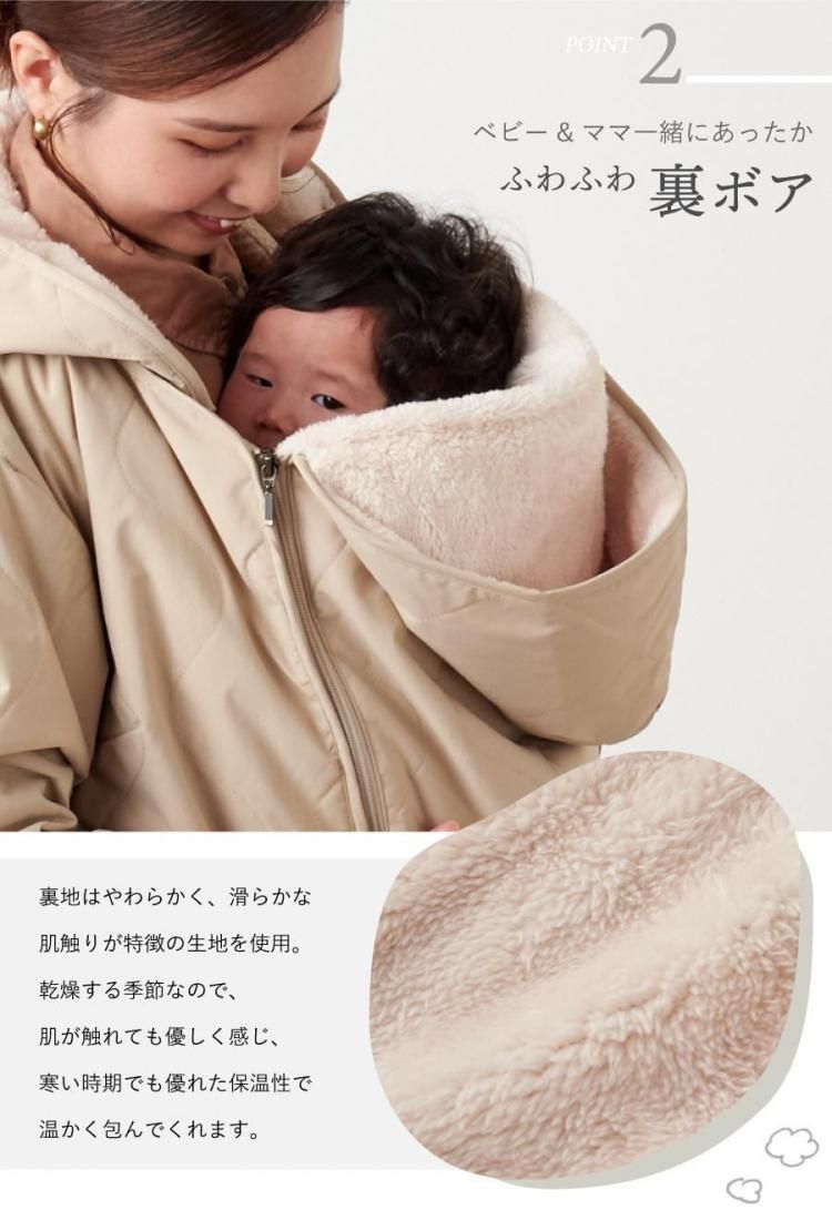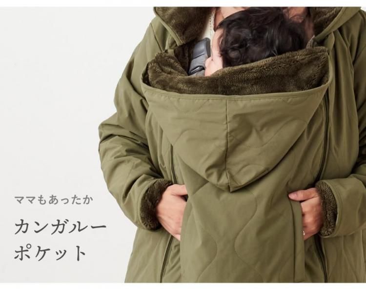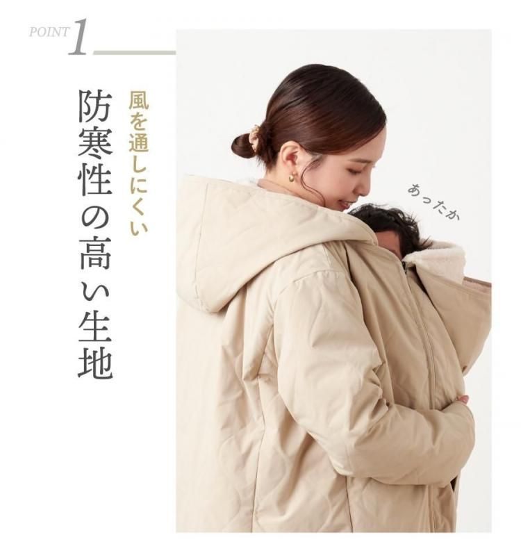 ママ コート アウター 抱っこ紐 防寒 ジャケット ダウン キルティング ゆったり 出産後 マタニティ レディース フード ベビー ボア 2WAY 静電気防止 赤ちゃん お母さん シンプル emoka