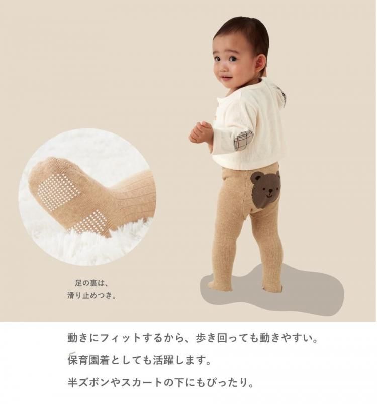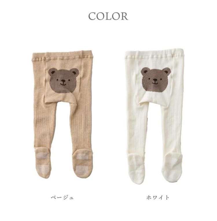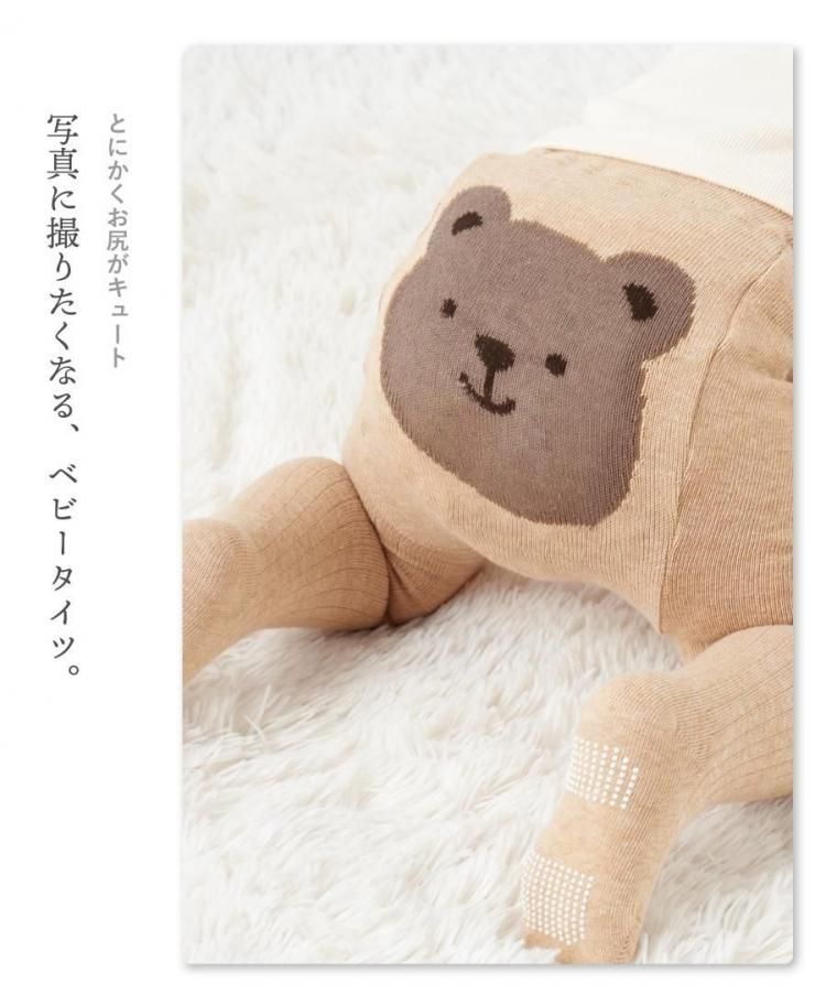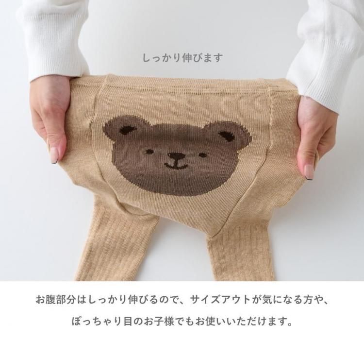 ベビータイツ くま おしり テディベア ベアーフェイス レギンス 赤ちゃん タイツ ゴム ベビー 子ども 伸縮性 オーガニックコットン シンプル 女の子 男の子 冬 秋 伸縮 ベビー服 靴下