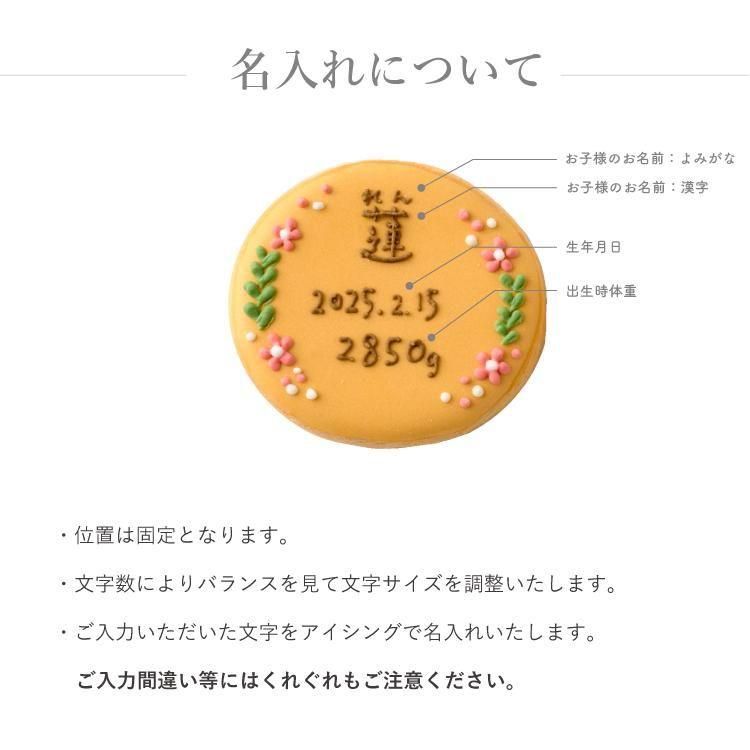 ・細心の注意を払っておりますが、配送の際、クッキーが割れてしまう可能性がございます。予めご理解の上、ご注文を頂きますようお願いいたします。 ・発送の目安は購入時にご確認いただけます。 ・ご注文後の内容の変更・キャンセルはお受けできません。 ・一つ一つ手作りのため、色味やデザインは商品ページと異なる場合がございます。 |