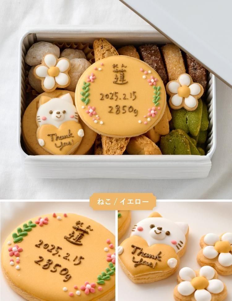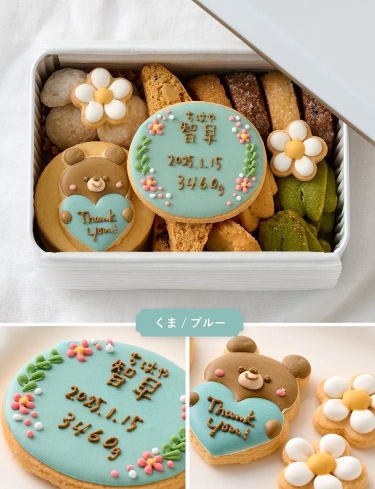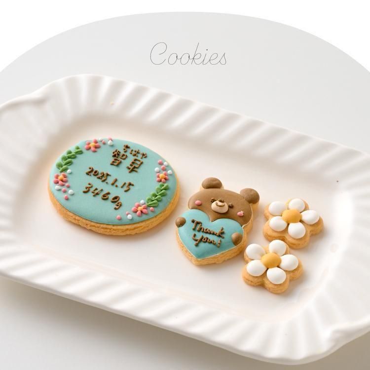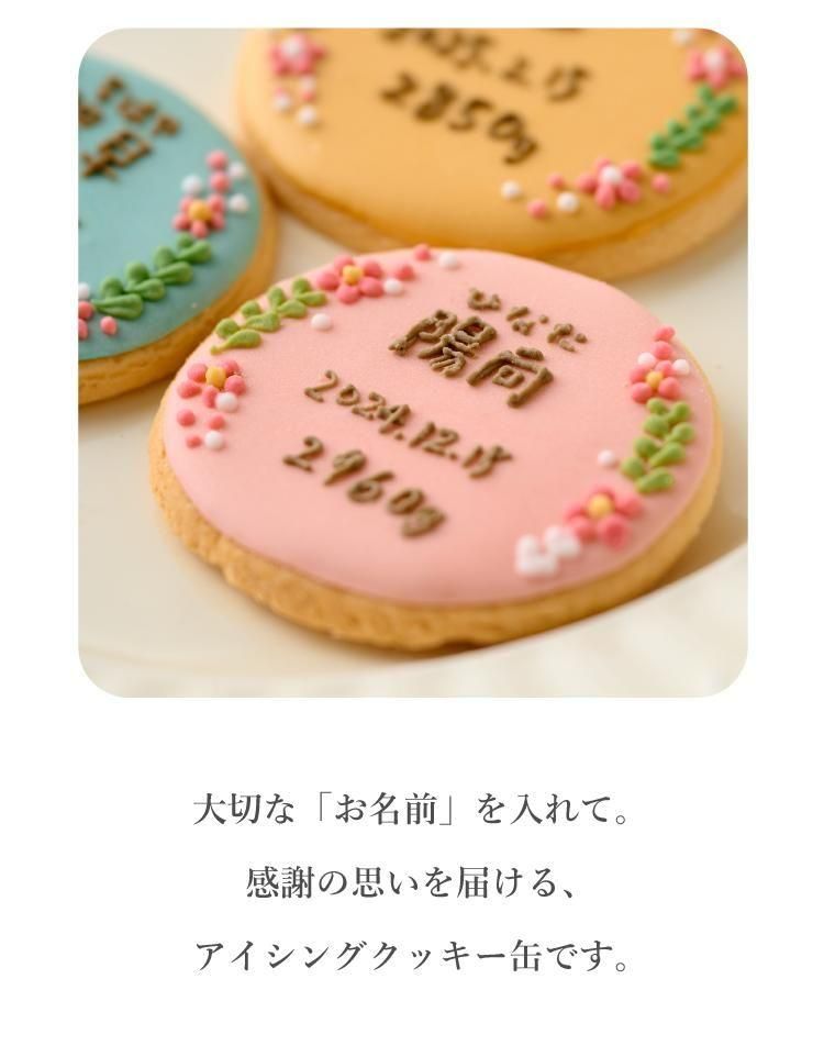 【名入れ アイシングクッキー缶 ミドル缶】 たからもの Kitchen × kitchen studio いちごはん 大切な「お名前」を入れて。 感謝の思いを届ける、アイシングクッキー缶です。 職人が一つ一つ心をこめて作るアイシングクッキーは、 とてもかわいく、プレゼントにも喜ばれます。 名入れクッキーには、 「お名前」「読み仮名」「生年月日」「出生時体重」が入ります。 「内祝い」や「出産祝い」「プチギフト」はもちろん。 ご自宅用として、ベビーと一緒に写真を撮るのもおすすめです。 < kitchen studio いちごはん > 兵庫県たつの市にある「kitchenstudioいちごはん」は、 “かわいい”をテーマにしたお菓子づくりや料理を提供しています。 素材の味をたいせつに、見た目にも心がときめくクッキーをひとつひとつ丁寧に製造しており、 教室発のスイーツブランドとして、週1回のパフェ専門店や月1回のクッキー詰め放題イベントを開催し、 「おいしい・たのしい・かわいい」を届ける場所として地域に親しまれています。 たからものKitchenでは、実際にお会いして信頼のできるパン屋さんにお願いしております。 kitchen studio いちごはん 様 とのコラボレーションにより、実現したプロジェクトです。 |