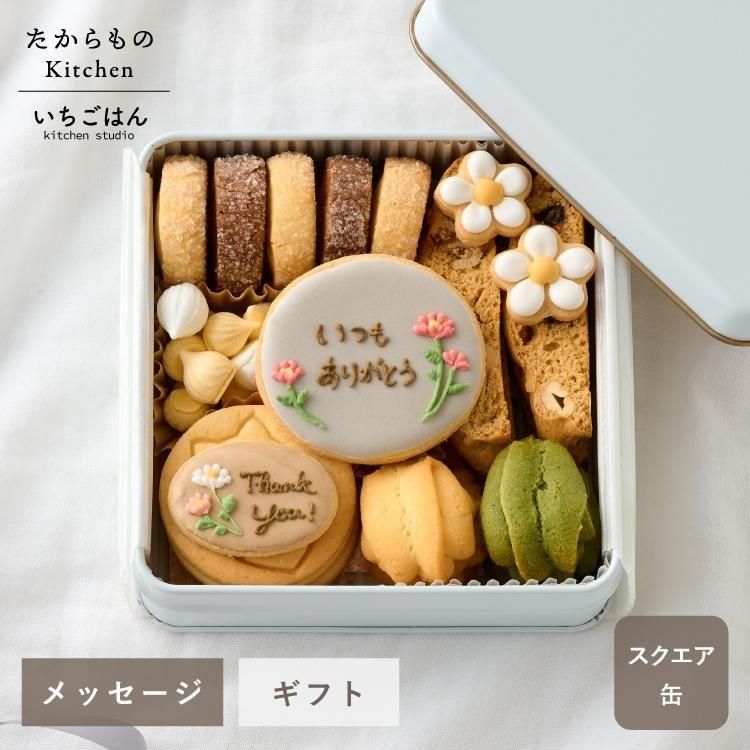 【メッセージスクエア缶】名入れ メッセージ クッキー缶 クッキー お菓子 名入れ お名前 出産祝い 内祝い お返し アイシングクッキー いちごはん たからものキッチン Litakara
