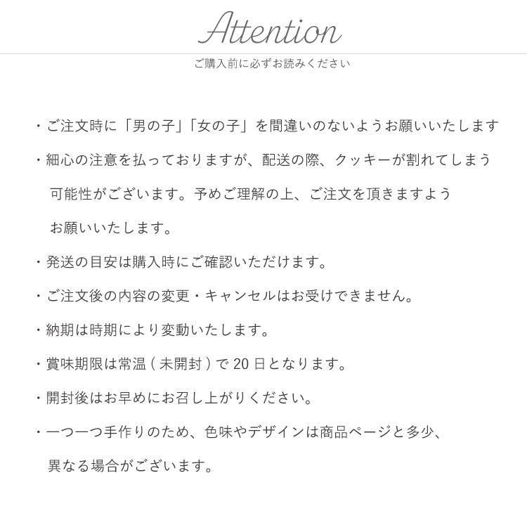 ・細心の注意を払っておりますが、配送の際、クッキーが割れてしまう可能性がございます。予めご理解の上、ご注文を頂きますようお願いいたします。 ・発送の目安は購入時にご確認いただけます。 ・ご注文後の内容の変更・キャンセルはお受けできません。 ・一つ一つ手作りのため、色味やデザインは商品ページと異なる場合がございます。 |