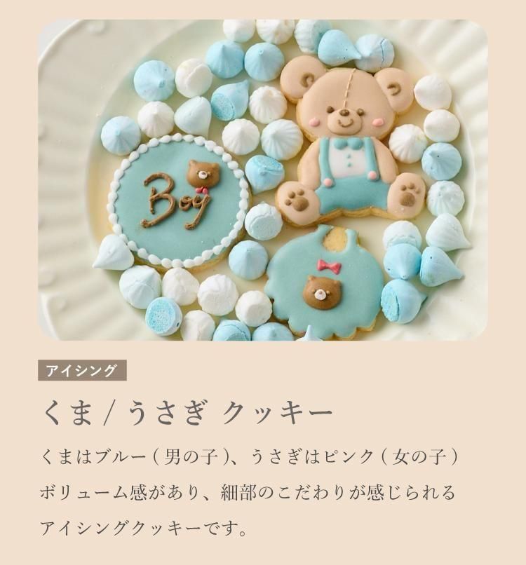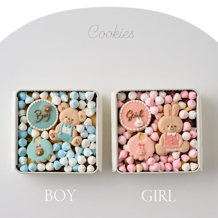 【ジェンダーリビール アイシングクッキー缶 スクエア缶】 たからもの Kitchen × kitchen studio いちごはん 赤ちゃんの性別を発表する特別な瞬間を、かわいいクッキー缶で。 「ジェンダーリビールクッキー缶」は、ふたを開けると「男の子=くま」「女の子=うさぎ」のアイシングクッキーがお目見え。 鮮やかなメレンゲクッキーが缶いっぱいに広がり、開けた瞬間に笑顔がこぼれます。 ひとつひとつ丁寧に仕上げたアイシングには、「かわいい」を詰め込んだこだわりが。 ベビーのスタイや小物を選ぶようなワクワクした気持ちを、そのままギフトにしました。 ジェンダーリビールパーティーや、妊娠報告のサプライズにもぴったりです。 < kitchen studio いちごはん > 兵庫県たつの市にある「kitchenstudioいちごはん」は、 “かわいい”をテーマにしたお菓子づくりや料理を提供しています。 素材の味をたいせつに、見た目にも心がときめくクッキーをひとつひとつ丁寧に製造しており、 教室発のスイーツブランドとして、週1回のパフェ専門店や月1回のクッキー詰め放題イベントを開催し、 「おいしい・たのしい・かわいい」を届ける場所として地域に親しまれています。 たからものKitchenでは、実際にお会いして信頼のできるパン屋さんにお願いしております。 kitchen studio いちごはん 様 とのコラボレーションにより、実現したプロジェクトです。 |