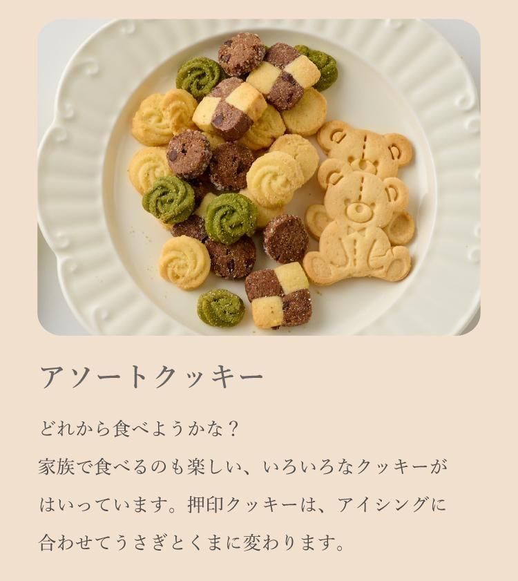 小麦粉(国内製造) 国産バター 砂糖 アーモンドプードル チョコレート ココア 抹茶 塩 有機バニラペースト 乾燥卵白 レモン汁/アイシングカラー (一部に、小麦・乳成分・卵・アーモンドを含む) ※保存料不使用 |