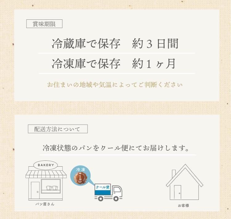冷蔵庫で保存:約3日間 冷凍庫で保存:約1ヶ月 お住まいの地域や気温によってご判断ください |