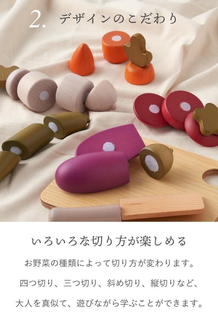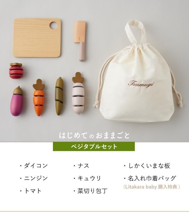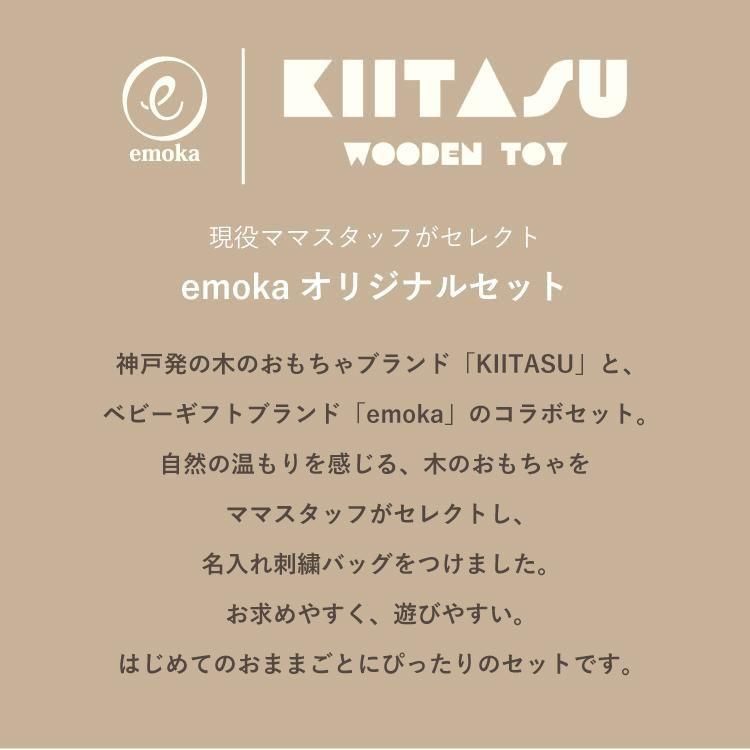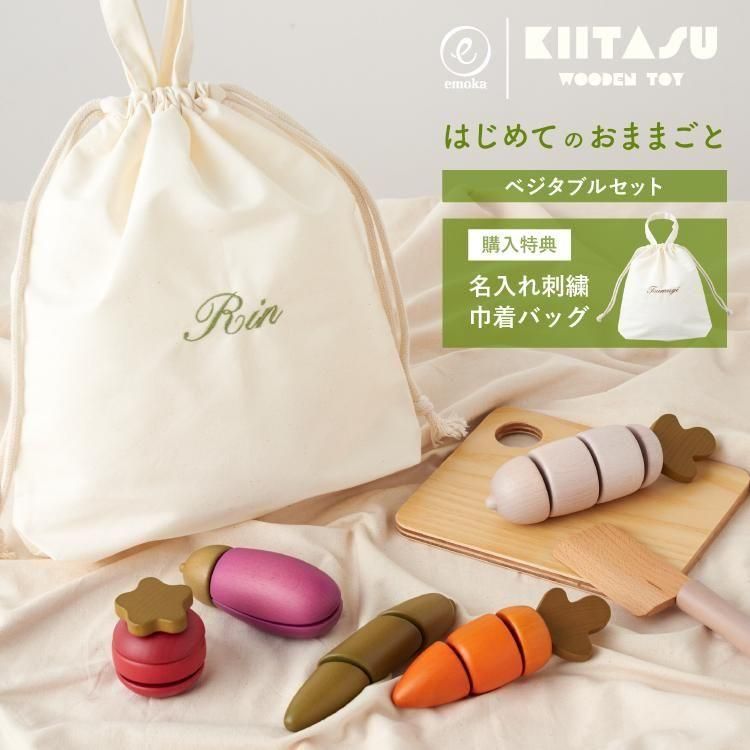 emokaオリジナルセット 【はじめてのおままごと ベジタブルセット】 神戸発の木のブランド「KIITASU」と「emoka」のコラボレーション。 ママスタッフがセレクトした、遊びやすくてお求めやすいおままごとセットです。 名入れ刺繍入りの巾着バッグ付きで、収納もかわいくスマートに。 KIITASUのおままごとアイテムから厳選した特別セットです。 塗料はすべて食品検査に合格した安全なものを使用し、安心して遊べる設計です。 木のぬくもりあふれる特別なギフトは、クリスマスプレゼントにもぴったりです。 |